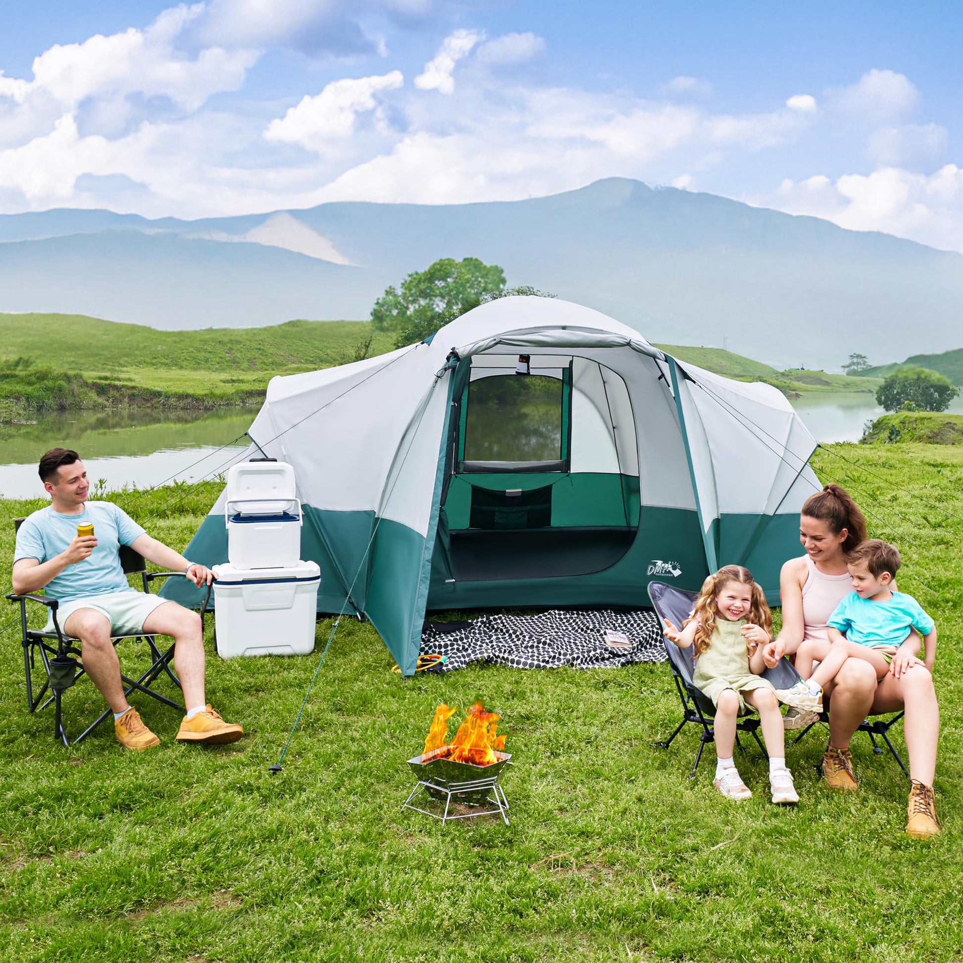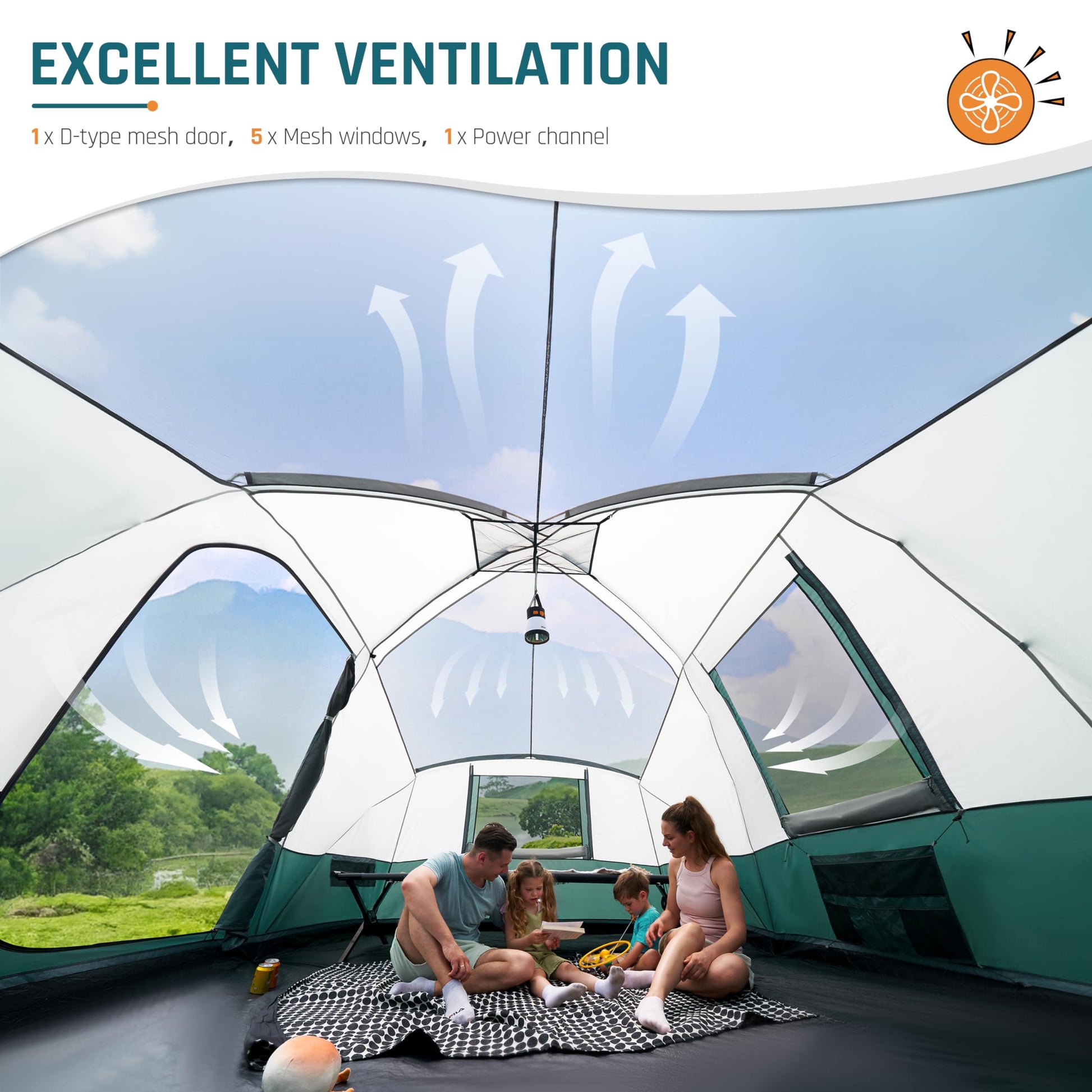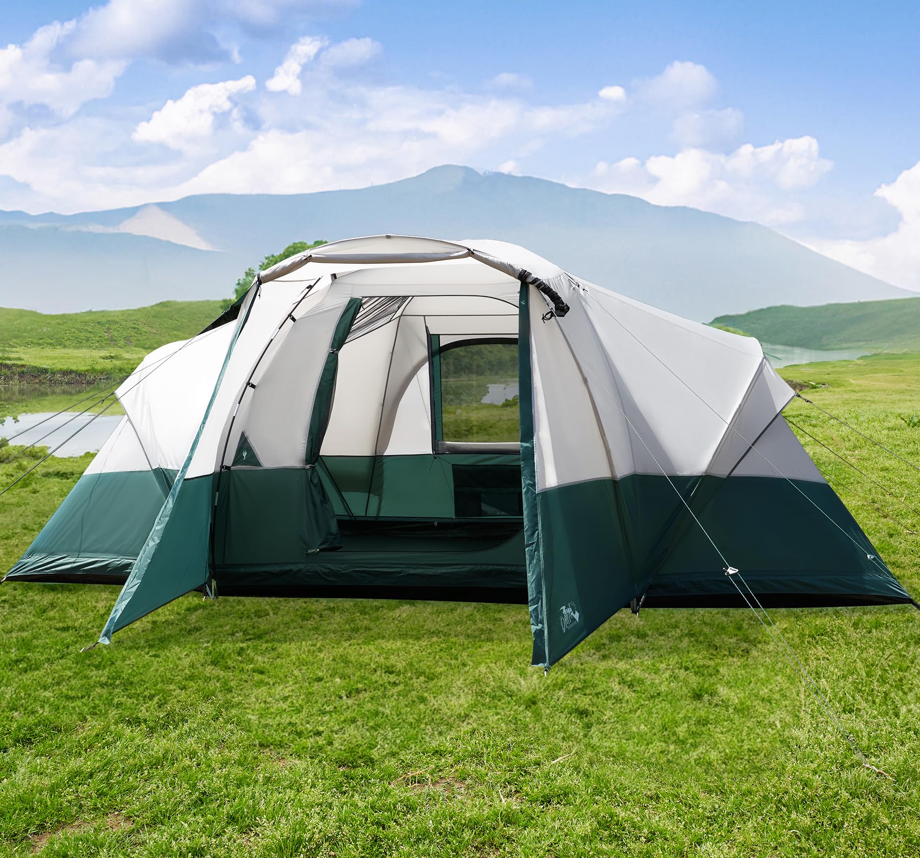 - Extra Vestibule & Ventilation: This camping tent features a spacious vestibule, perfect for lounging and protection from rain. With a D-shaped mesh door and 6 mesh windows, ventilation is excellent, ensuring a comfortable camping experience.