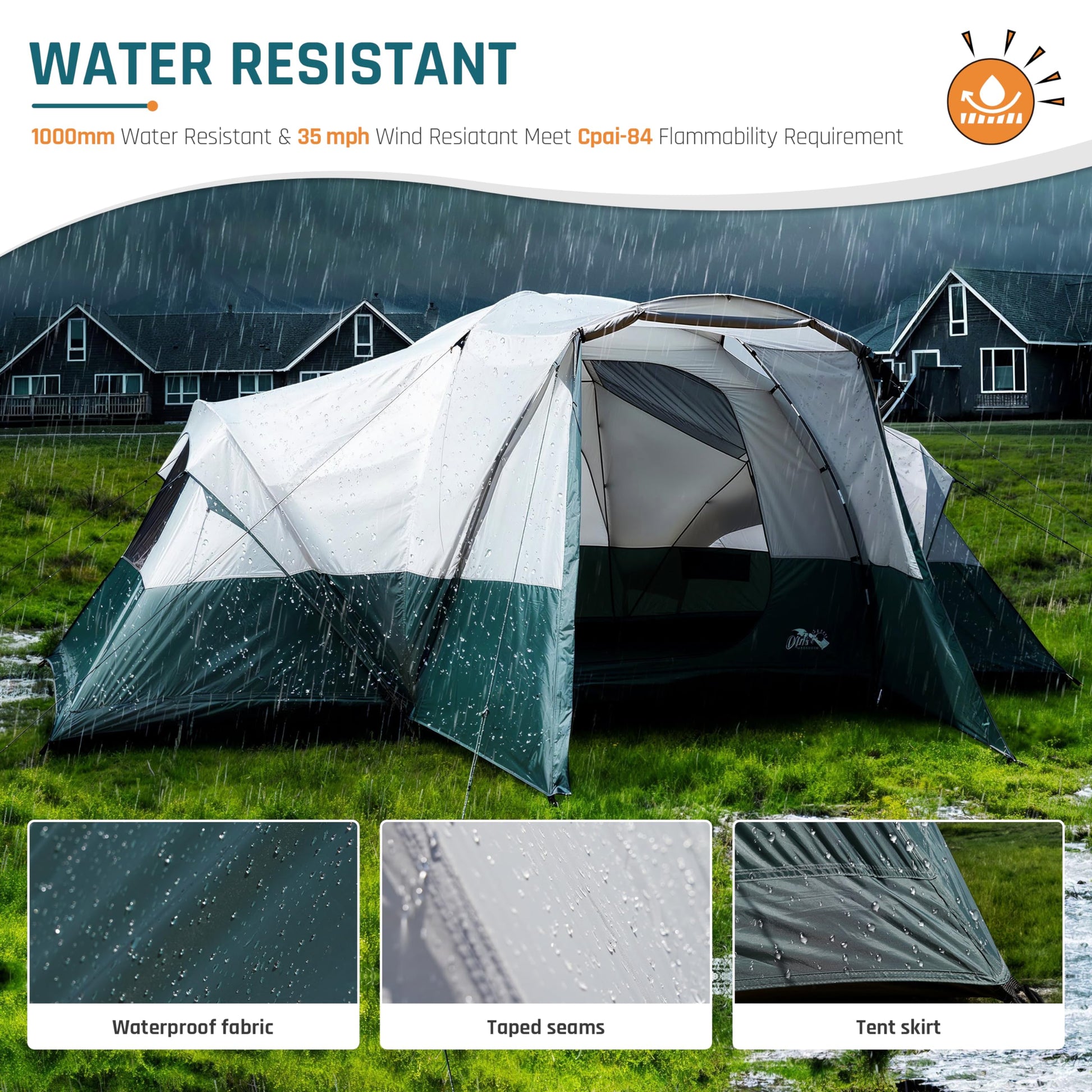 - Water Resistance & E-Port: The included rainfly is the main rainproof accessory. With taped seams, tent skirt design and waterproof fabric, our outdoor tent offers robust water resistance. And the rain-resistant E-Port makes it easier and safer to plug power into the tent.