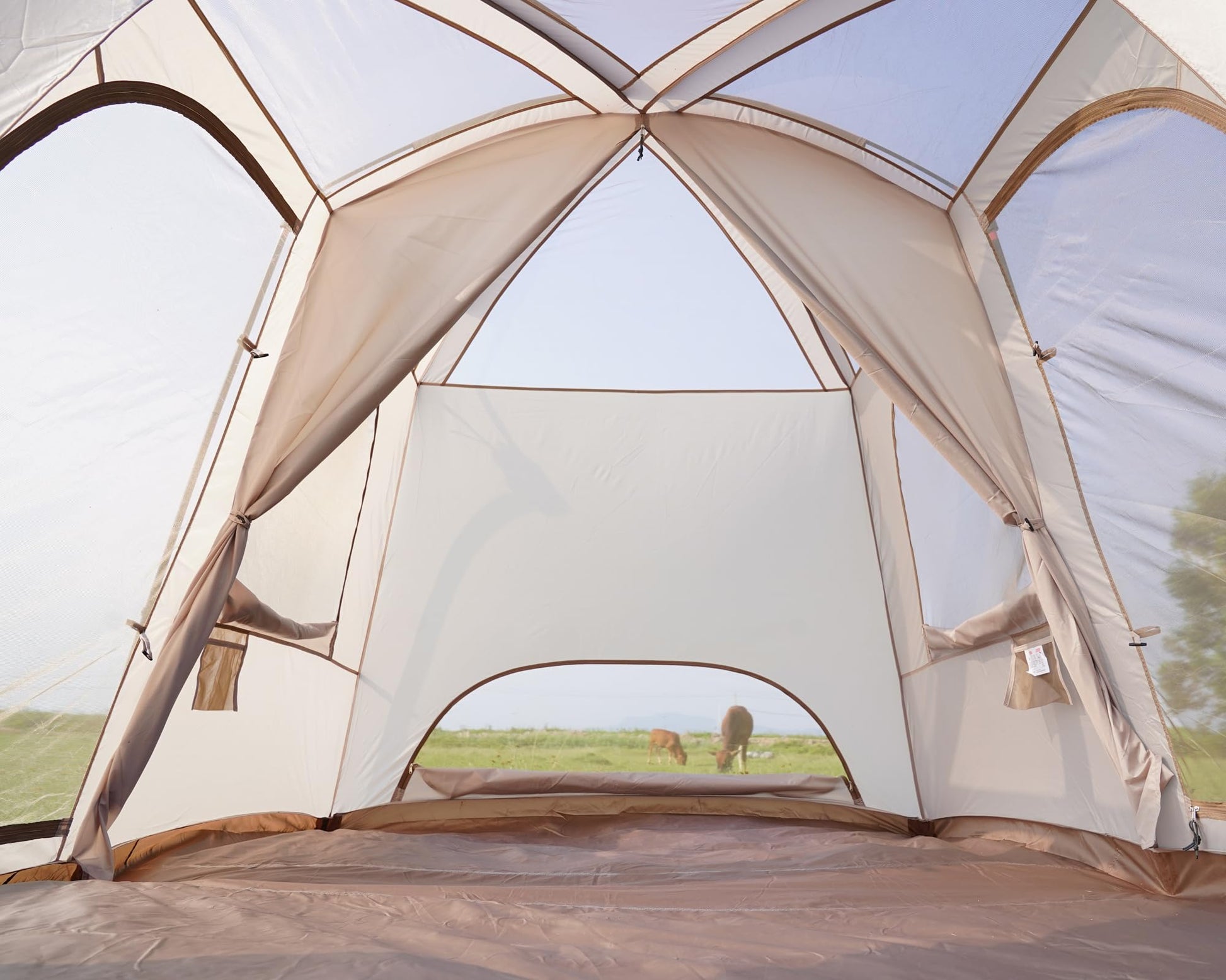 - GOOD VENTILATION & SCENIC VIEWS OF THE OUDOORS: This 4-6 person tent has 3 mesh doors, 2 mesh windows & mesh tent top, which allow the breeze to come in and keep the bugs out. Top large mesh roof makes it available to watch stars with a wide view at night.